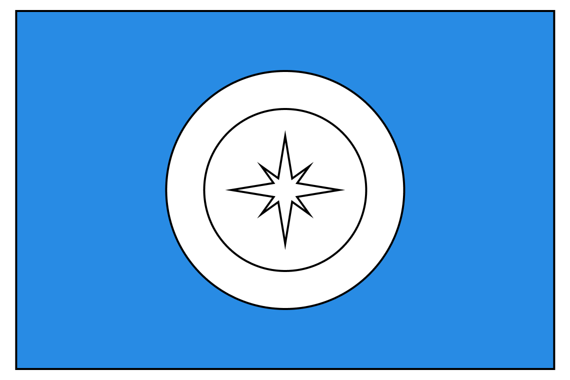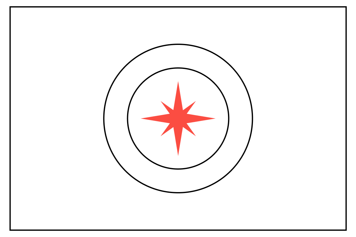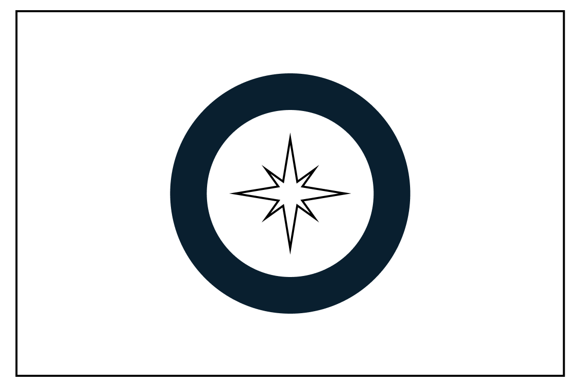 The diameter of the dark blue circle is 2/3rds (66%) the height of the flag. The diameter of the inner white circle is 2/3rds the length of the outer dark blue circle. Example: If the diameter of the dark blue circle is 600 pixels, the inner white circle’s diameter is 400 pixels.